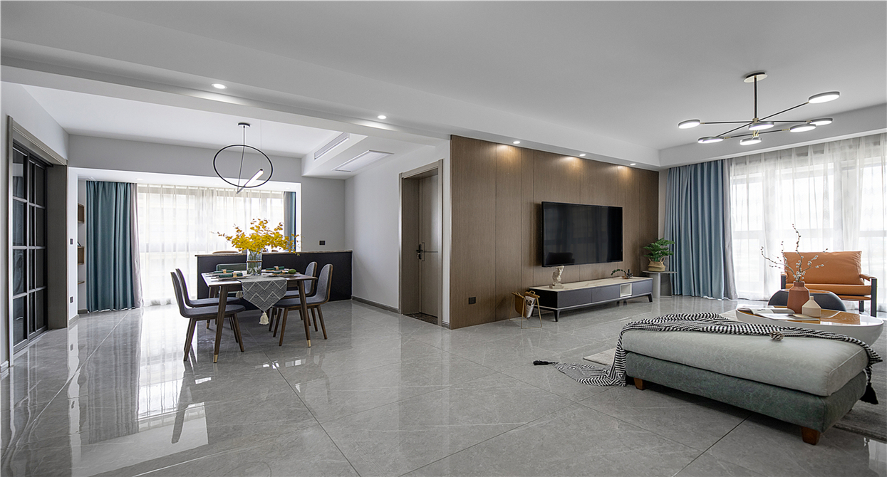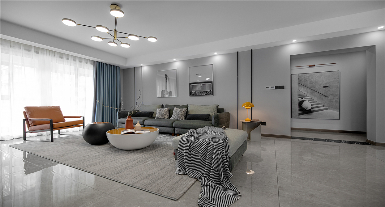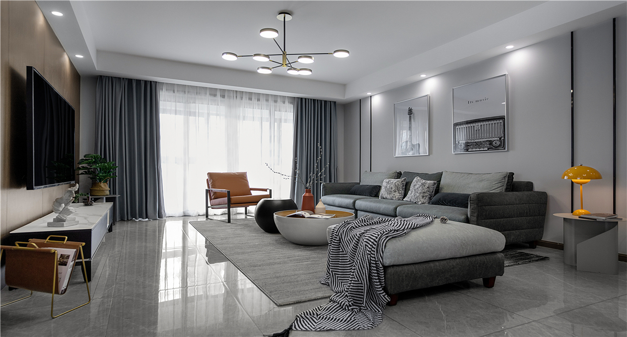 现代风格由于线条简单、装饰元素少,现代风格家具需要完美的软装配合,才能显示出美感。现代风格家居重视功能和空间组织,注意发挥结构构成本身的形式美,造型简洁,反对多余装饰。客厅:用简单简约的金属线条来打造沙发背景,用软装的搭配来实现中和整个空间的过分安静,电视背景墙也没有必要过分的休息简单的背景和电视柜协调就好了。这样的厨房应该没有人不爱吧灰色的橱柜让整个空间看起来特别的舒适和一体,也可以省去很多大理的时间。客餐厅没有过分的分开而是在转交自然而然的分开整理空间使用感上是特别的舒服的不会感觉特别的拥挤。卧室的风格各有不同根据不同居住者得喜好刷了不同的乳胶漆,简介大气为主。