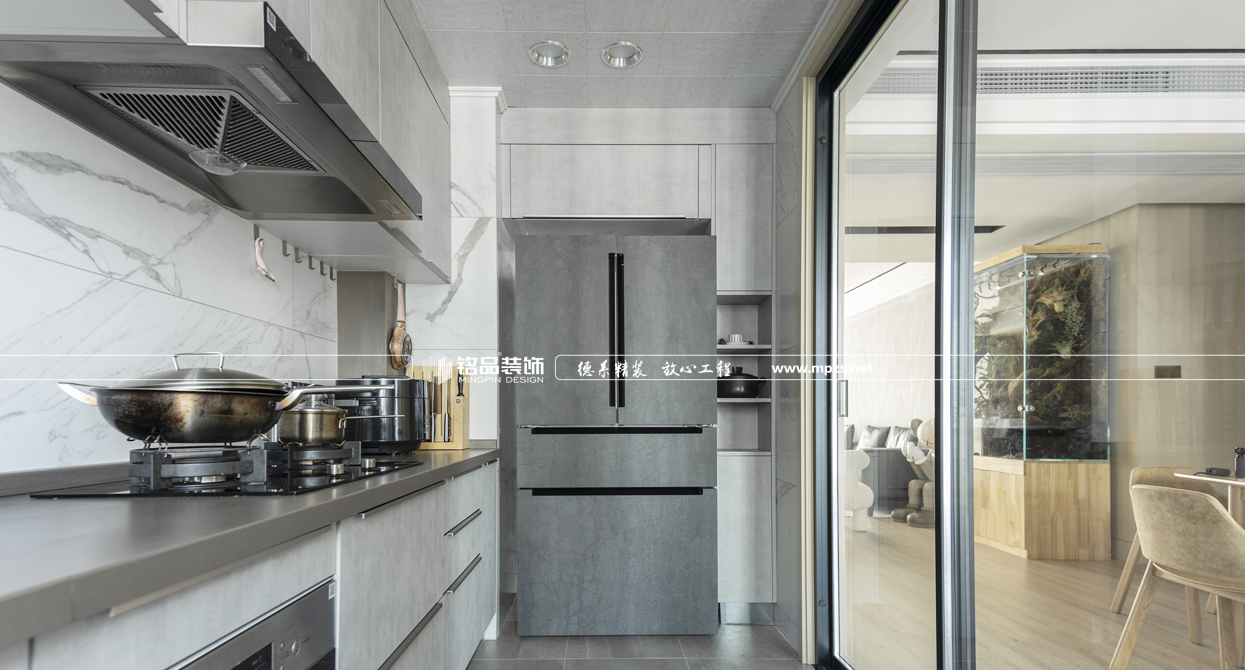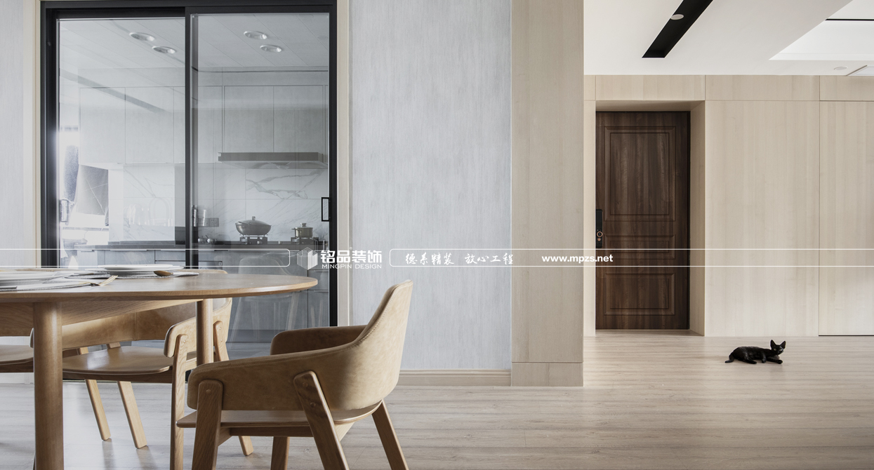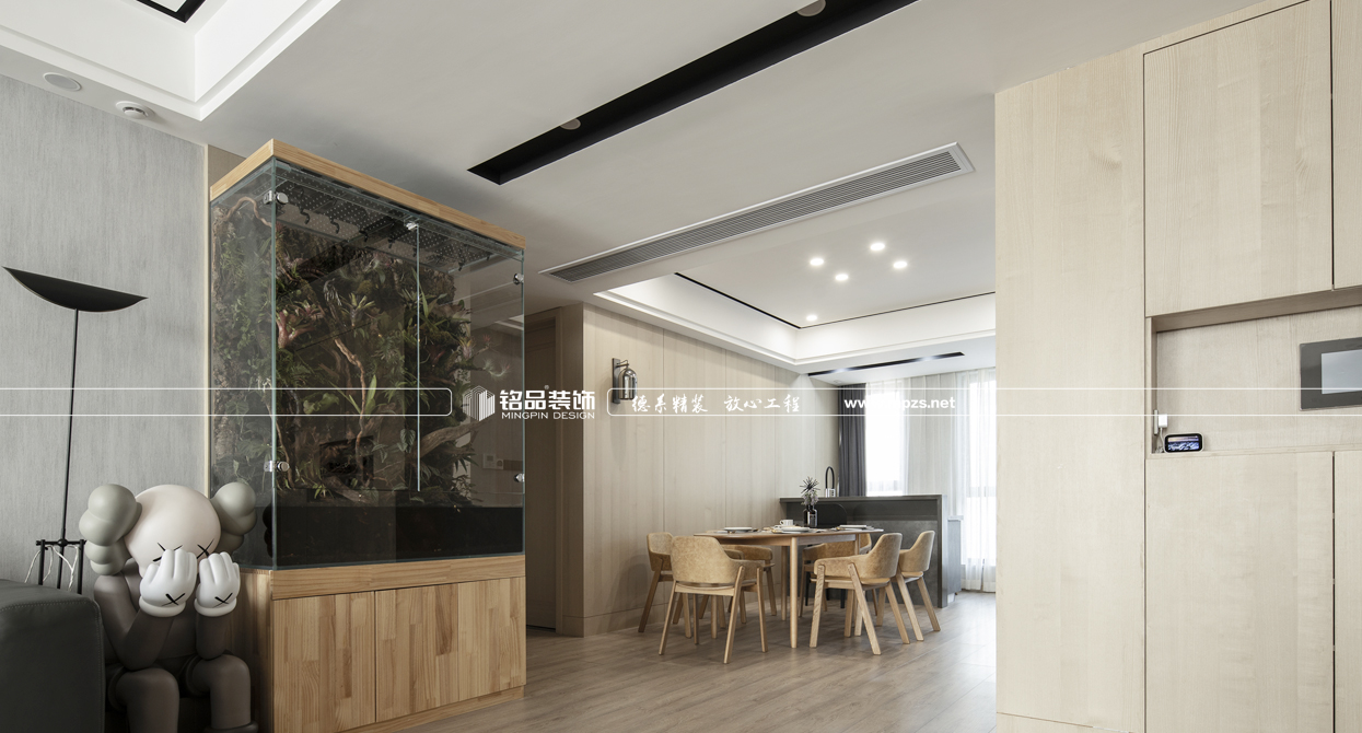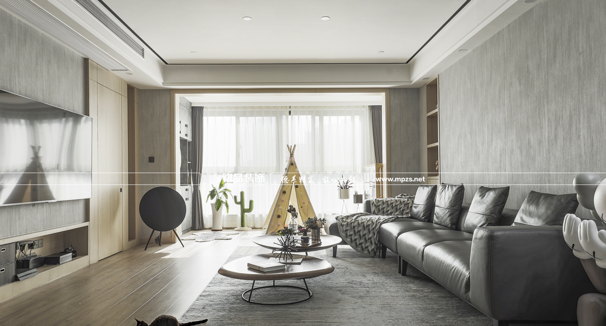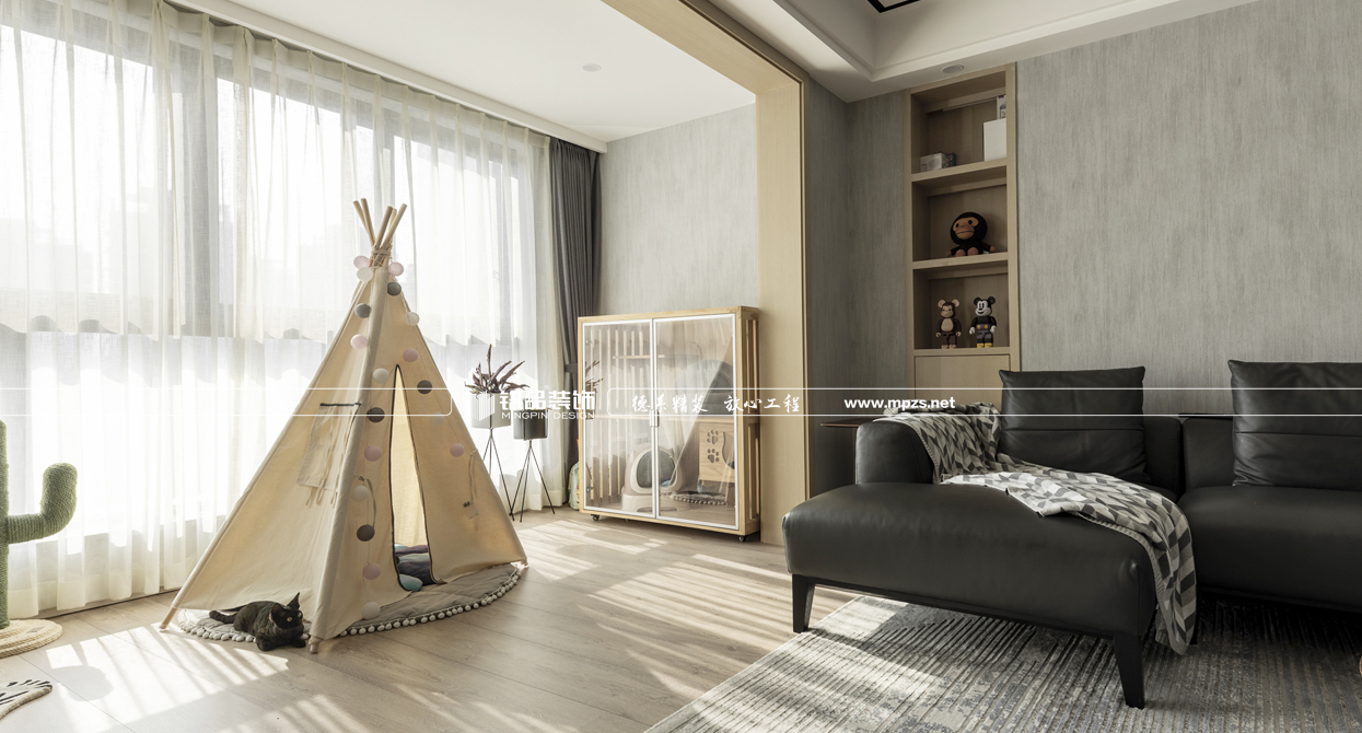 “山有木兮,木有枝” 繁忙的都市生活让我们许久未曾融入自然,如何做一种舒适、放松、不拘泥的生活空间,舍弃风格本身的限制,用大自然最本身的材料去装饰我们的生活 。 “木” 是起点,也是生活的开始。水泥板贯穿整个空间,用呼应手法创造出空间的层次感和趣味性。而在杭州装修这样的空间再搭配杭州这样的城市属性那生活跟诗一般。 这是一套200平米的现代简约风格的大平层装修案例,整体空间以简洁时尚的空间,布置上素雅时尚的家具软质,营造出一种自然优雅的高端与档次氛围。 宽敞大气的客厅,天花吊平做无主灯的设计,电视墙是定制地台+墙纸背景墙的设计,藏在天花里的灯带,都让空间显得更加简洁优雅。 现代优雅的灰色皮沙发,搭配圆茶几,地面整体垫上简雅的地毯,侧边还有简单的装饰,让客厅呈现出一种华丽端庄的高级气质。 客厅与阳台打通,阳台给小猫咪安排上了居住场所,也让空间显得使用简约而大方。沙发边上带有一个小茶几功能,布置精致优雅的摆件,也是显得更加优雅温馨。 简雅明亮的空间,在玻璃的通透视线下,显得格外的华丽时尚而端庄。 吧台角落位置的收纳柜,嵌入安装电器,显得简洁时尚而高级。 卧室床头墙以暖木色的木饰面背景墙,布置上一张木制的床,侧边长方形的深色床头柜,床上布置浅灰的床单,营造出一个干净优雅而舒适的卧室。 白色优雅的软质床铺,布置绿色床单,显得舒适童趣而梦幻;侧边衣柜加入空格架,摆上书籍与公仔等小摆饰,也让空间显得更加有活力。