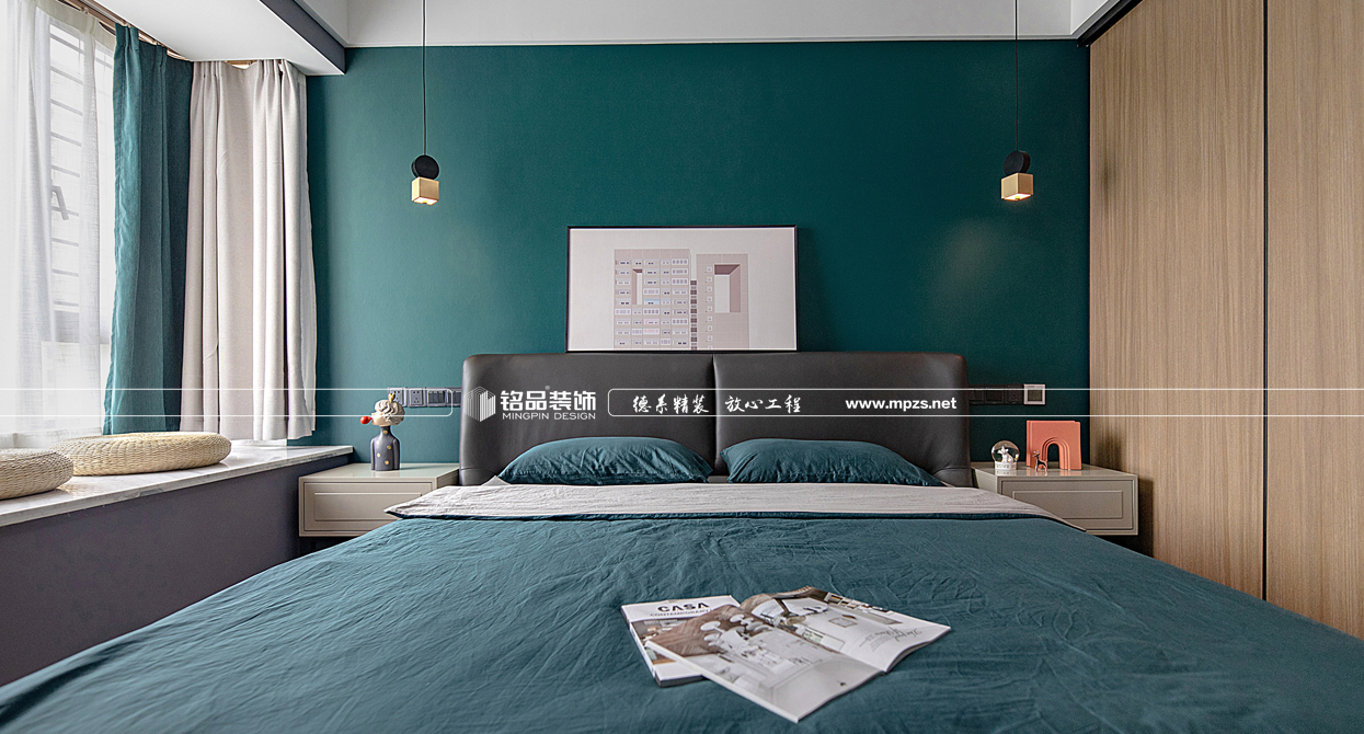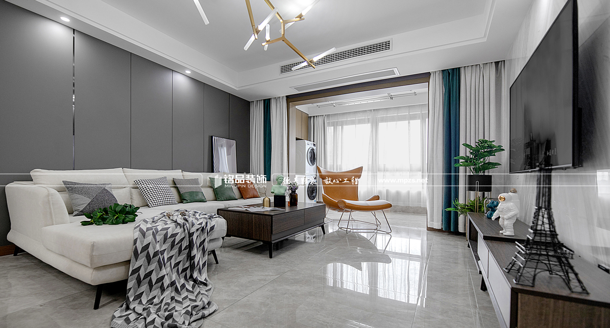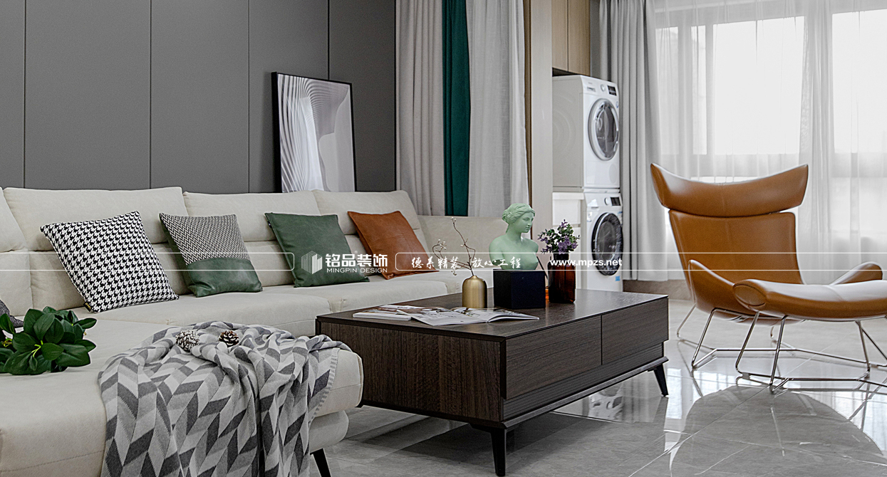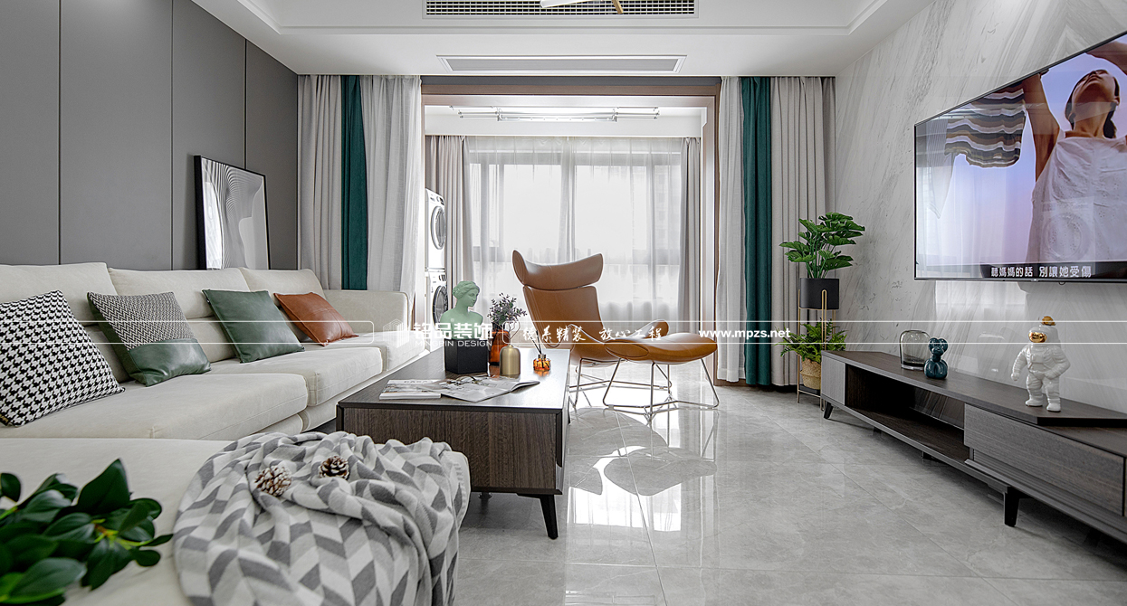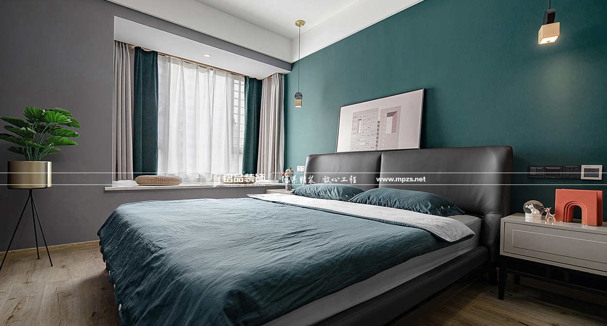本案例房屋面积为126㎡,主要是公寓装修,以轻奢风格为主,色系以白色、灰色作为空间的主色,装饰主要体现空间通透奢华 ▲客厅空间是横厅布局,沙发右方是餐厅区域,侧边一旁落地窗,为空间带来明亮舒适的采光,在现代风的基调布置下,摆上简约舒适的家居,让空间显得从容而舒适,大理石纹路和木纹的木饰面电视北背景墙,布置上现代舒适的布艺沙发,还有木材质的茶几,褐色的休闲沙发椅、也让空间充满轻松自然的惬意感。 沙发右方布置现代精致的餐桌椅,在材与布艺质感的结合搭配下,呈现出一个华丽高级的用餐空间。 餐桌上轻奢精致的餐具、花盆与摆饰品,也让用餐氛围显得更加华丽情趣而有仪式感。 现代舒适的卧室空间,布置皮艺床与深绿色床单,床头区域摆上两个精致的床头柜,布置精致摆饰,简约温馨的空间,充满时尚优雅的质感。 次卧同样也是以蓝色的硬包为背景,布置木艺床与素雅的床单,呈现出的睡眠环境也安静温情。